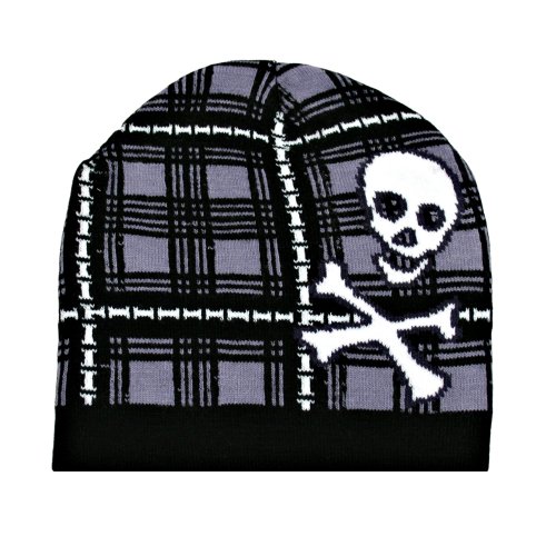 Free Shipping Black & Gray Plaid Beanie Skull & Bones Knit Cap Hat @ Amazon.com