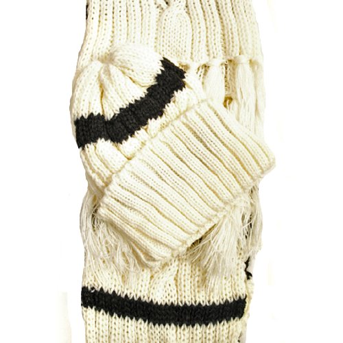 Ivory & Black Striped Cable Knit Scarf & Beanie Cap Hat 2 Piece Matching Set Review