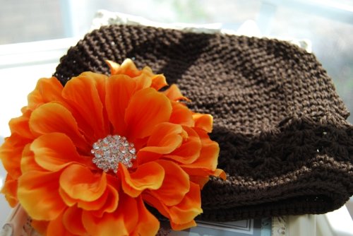 Gorgeous Large Tangerine Orange Flower with Sparkling Rhinestones Clusters Center on Chocolate Beanie Hat. Fit Baby up to 4 Years. Review