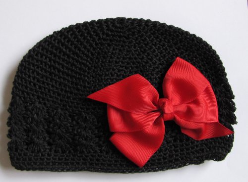 Free Shipping A Girl Company Black Crochet Beanie Hat with Red Hair Bow for Girls/Baby @ Amazon.com