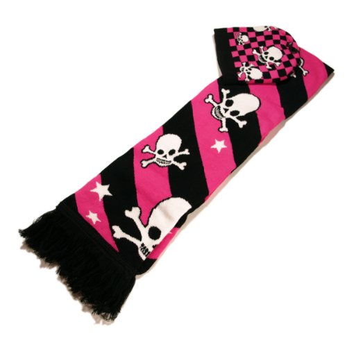 Cute Pink & Black Striped Knit Hat / Beanie & Scarf Set with Skulls & Bones Review