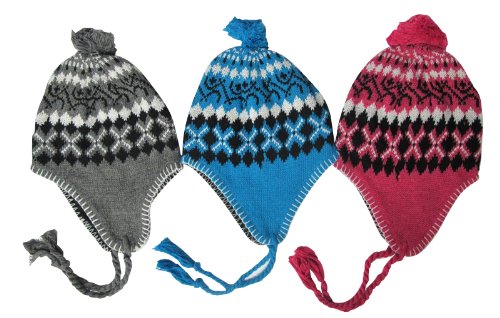 EarFlap Hat, Acrylic knit fashion Jacouard Design Beanie Hat with soft warm lining, Girl Size, 3 Colors included Review