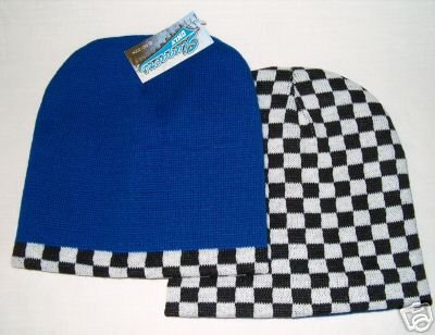 ROYAL BLUE BLACK & WHITE CHECKERED REVERSIBLE SHORT BEANIE CAP SKI CAPS TOQUE Review