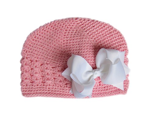 This pink crochet beanie and hair bow set is perfect for baby and girl. The beanie is light-weight and stretches for a comfortable fit. The beanie will fit infant through about age 12. The 3-3/4 inch white hair bow is removable. 3 accessories-in-1, wear the beanie and hair bow together, the hair bow alone or the hat alone. A great Easter hair collection. Read more...