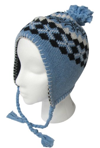 EarFlap Hat, Acrylic knit fashion Jacouard Design Beanie Hat with soft warm lining, Girl Size, Color Blue Review