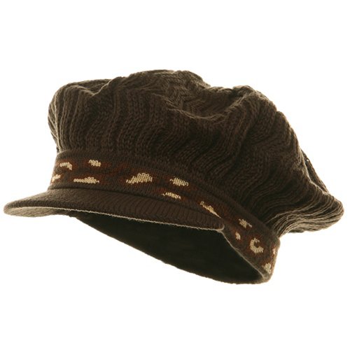 Show your true colors and get wide coverage and protection from the elements in this Jamaican style large crowned beanie with visor and leopard print trim. The material is thick and soft and constructed out of a medium wavy rib knit, giving it a lot of stretch and flexibility. The oversized crown is gathered at the top to form a large round shape. The banded cuff is decorated with a khaki and light brown leopard print woven into the knit to accent the chocolate brown color of the hat. And the hat is finished with a knit covered brim of 2-1/4. Lightweight for travel, the crown will hold even the longest of locks. Made of 100% Acrylic. Crown measures 9 deep, 10 wide. Bill measures 2-1/2 long. ONE SIZE fits most, from 6-7 5/8. Hand Wash. Imported. Available in White, Khaki, Black, Navy, Brown, and Grey. Read more...