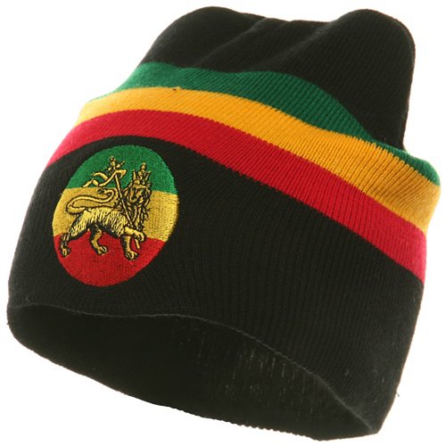 We offer you a colorful, very stretchy beanie in black with rasta stripes of red, yellow, and green and a smooth embroidery detail. The beanie is constructed out of 1 panel of double layered, fine polyester knit, giving it softness, and a lot of flexibility, as well as great insulation from the cold. There is no unseemly seam to bulk up the fit. The base of the crown is adorned with an intricate round embroidery of the regal Lion of Judah. Small and lightweight enough to keep in a back pocket, this hat will keep you protected without compromising your personal style. Made of 100% polyester. Crown measures 8 deep, 7-1/2 wide. ONE SIZE fits most, from child to adult. Made of 100% polyester. Crown measures 8 deep, 7-1/2 wide. ONE SIZE fits most, from child to adult. Imported. Read more...