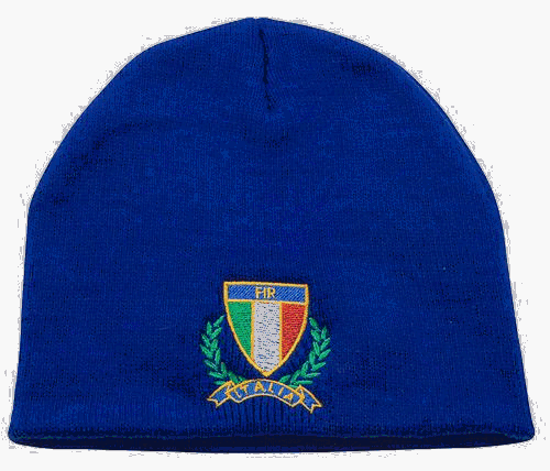 Beanie pullover cap. Embroidered with Italy crest and Italia lettered below it. 100% Acrylic Knit. Available in Royal. One size fits most. Read more...