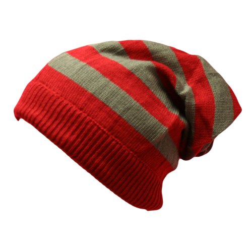 Measures 7 inches wide, when flat Measures 12 inches long, top to bottom, when flat. Cap has a maximum circumference of 24 inches. Read more...Free Shipping Red & Grey Striped Slouch Knit Beanie Hat & Neck Warmer @ Amazon.com